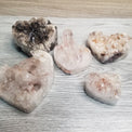 These gorgeous quartz clusters were cut into a heart shape and then semi-polished. Most are clear quartz with varying amounts of iron staining, while one is a dark smokey quartz. In some spots, due to the nature of each piece, they may exhibit small chipping or the occasional sharp edge.