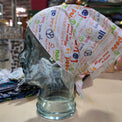 These simple, comfortable kerchiefs were made by the lovely Penny from And Sew On. They are made from polyester-cotton blended fabrics. The size is based on the size of the fabric, so they vary slightly, but they do fit most heads. Jess loves wearing these on a regular basis!