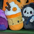 This Squishables brand "Snugglemi Snackers" stuffie has dimensions of 13 cm x 13 cm x 20 cm and is composed of 100% polyester fibre, which is all new material. It is suitable for all ages and includes an attached mini pumpkin and cinnamon sticks. All details are embroidered on for quality and comfort. It features a weighted bottom to help it stand up.