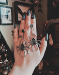 Weaving webs of Magic, Miss Spider dangles from the Witch's ears.