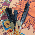 We currently have two bundles of crow wing feathers available: 2 large feathers for $5, or 3 medium feathers for $5. The large feathers are roughly 25 cm long, and the medium feathers are roughly 19-20 cm long. Use these for fanning incense or spells, to evoke the element of air, or to evoke all that crows represent.