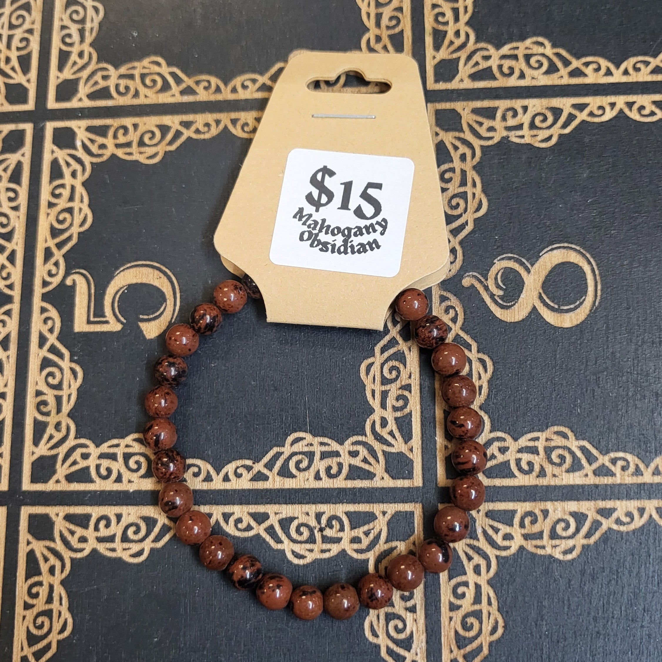 6mm beads, 6.5 inches in diameter, double strung with elastic. Made by Kendra!