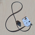 This pendant necklace is on a 16" polyester cord necklace with 1.5" adjustable metal clasp. It features a Black Tourmaline tumbled stone pendant, we recommend it for grounding and protection, but Black Tourmaline is good for so many other things!