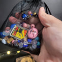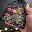 Beads, little crystals and at least one larger pendant or small superhero goodie.